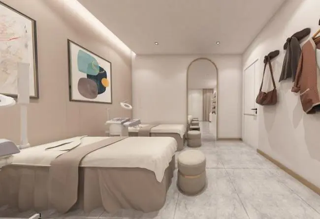 一般来说,操作区占据的面积很大,是重要的区域。这块区域应该保持干净舒适和宽松,让顾客们尽情的享受音乐和美容服务。另外,这里的床铺、椅子以及其它用具,都应该精美一些,提升整体的档次。一致的色调,提升顾客体验感。
